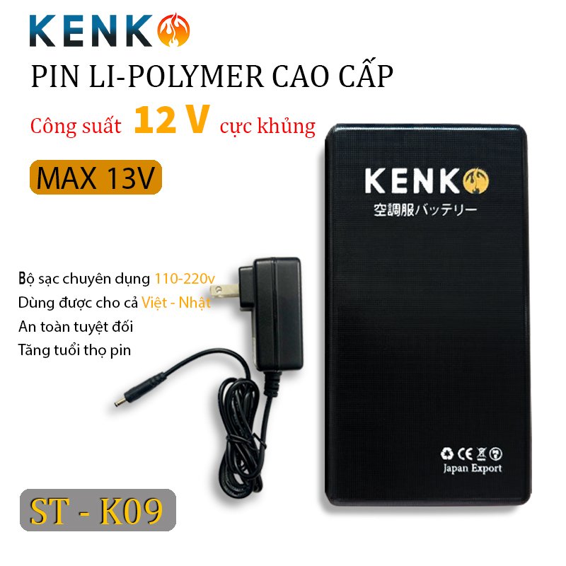 KENKO tự hào là thương hiệu áo điều hòa tốt nhất hiện nay, sử dụng bộ pin quạt chuẩn chất lượng Nhật Bản tích hợp 8 tính năng bảo vệ thông minh với chứng nhận của Liên Minh châu âu CE