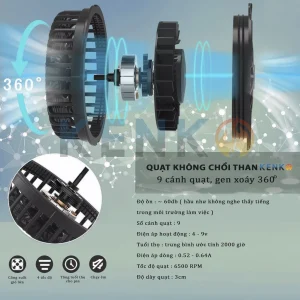 THÔNG TIN SẢN PHẨM QUẠT KHÔNG CHỔI THAN GẮN ÁO ĐIỀU HÒA 9V